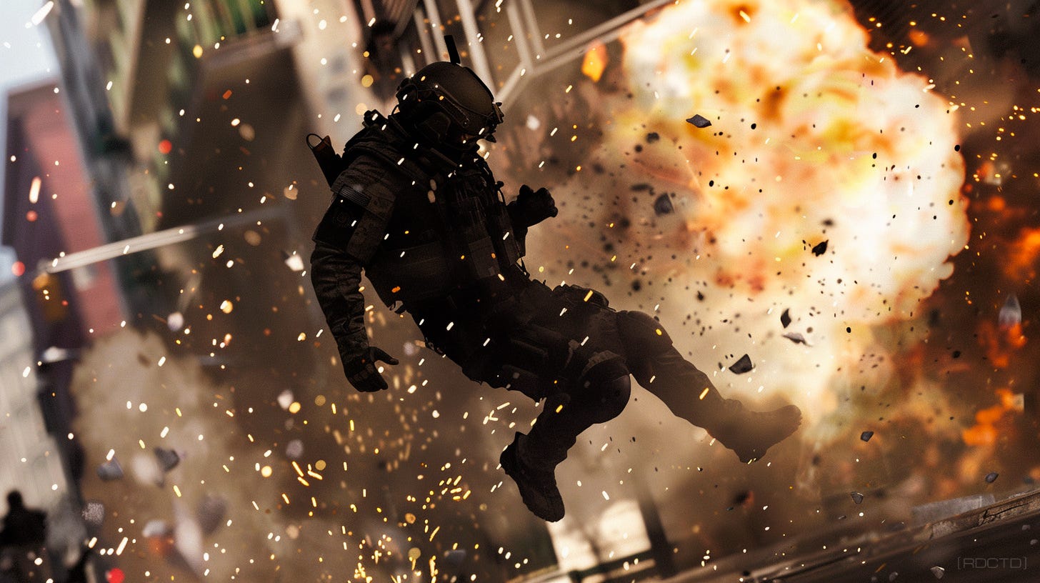 One second you're focused, adrenaline surging as you engage, and the next, a force slams into you - whether from an explosion, a strike, or a fall.